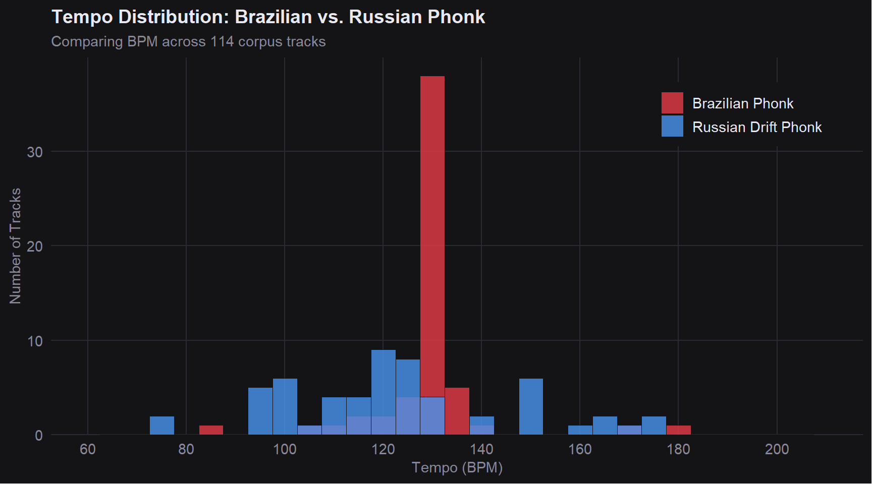 title = "Tempo Distribution: Brazilian vs. Russian Phonk",