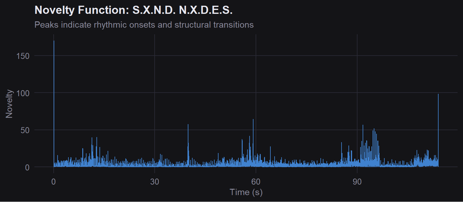 subtitle = "Peaks indicate rhythmic onsets and structural transitions",